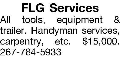 FLG Services All tools, equipment & trailer. Handyman services, carpentry, etc. $15,000. 267-784-5933