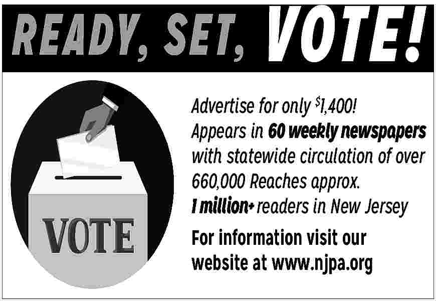 NJPA Keeping an eye on your governments? Manually search the site or register to receive email notifications and/or save your searches. Its a free public service provided by NJ Press Association at www.njpublicnotices.com ATTENTION BUSINESS OWNERS: Do you want to reach nearly a million readers? Place your 25-word classified ad in over 69 newspapers throughout NJ for $560. Contact Peggy Arbitell 609-359-7381 or visit www.njpa.org Deliver your message to nearly a million readers! Place a 2x2 Display Ad in NJ weekly newspapers. Call Peggy Arbitell at 609-406-0600 opt 2 or visit our website at www.njpa.org SunSetter. Americas Number One Awning! Instant shade at the touch of a button. Transform your deck or patio into an outdoor oasis. Up to 10-year limited warranty. Call now and SAVE $350 today! 1-855-734-5275 No more cleaning out gutters. Guaranteed! LeafFilter is backed by a no-clog guarantee and lifetime transferrable warranty. Call today 1-855-647-4643 to schedule a FREE inspection and no obligation estimate. Get 15% off your entire order. Plus, Military & Seniors get an additional 10% off. Limited time only. Restrictions apply, see representative for warranty and offer details. Jacuzzi Bath Remodel can install a new, custom bath or shower in as little as one day. For a limited time, waiving ALL installation costs! (Additional terms apply. Subject to change and vary by dealer. (Offer ends 12/31/25.) Call 1-844-701-0840 We Buy Houses for Cash AS IS! No repairs. No fuss. Any condition. Easy three step process: Call, get cash offer and get paid. Get your fair cash offer today by calling Liz Buys Houses: 1-855-254-6663