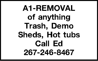 A1-REMOVAL of anything Trash, Demo Sheds, Hot tubs Call Ed 267-246-8467