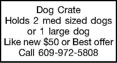 Dog Crate Holds 2 med sized dogs or 1 large dog Like new $50 or Best offer Call 609-972-5808