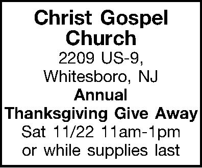 Christ Gospel Church 2209 US-9, Whitesboro, NJ Annual Thanksgiving Give Away Sat 11/22 11am-1pm or while supplies last